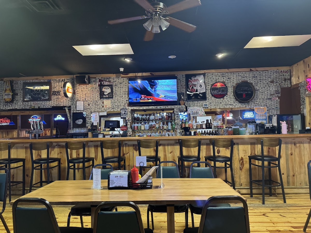Nice little dive bar to stop in for a drink. Bonus was a fantastic burger. I got nothing on it but meat and a bun and pepper jack cheese. It was good meat. Fries were good, and I washed it down with a IPA. Wife had fish and she said it was ok. We live near the beach in MX so we get fresh fish that's hard to beat, or compare to. Would stop back again. Sit at the bar and watch the rodeo on tv.